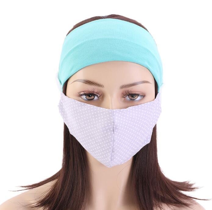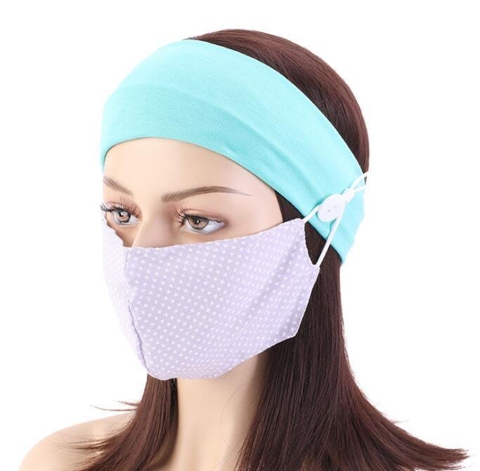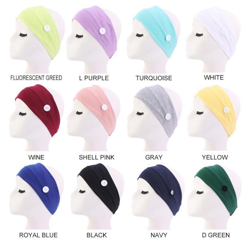 Women’s elastic cotton headband, ear mask hair band, button sports Headband=