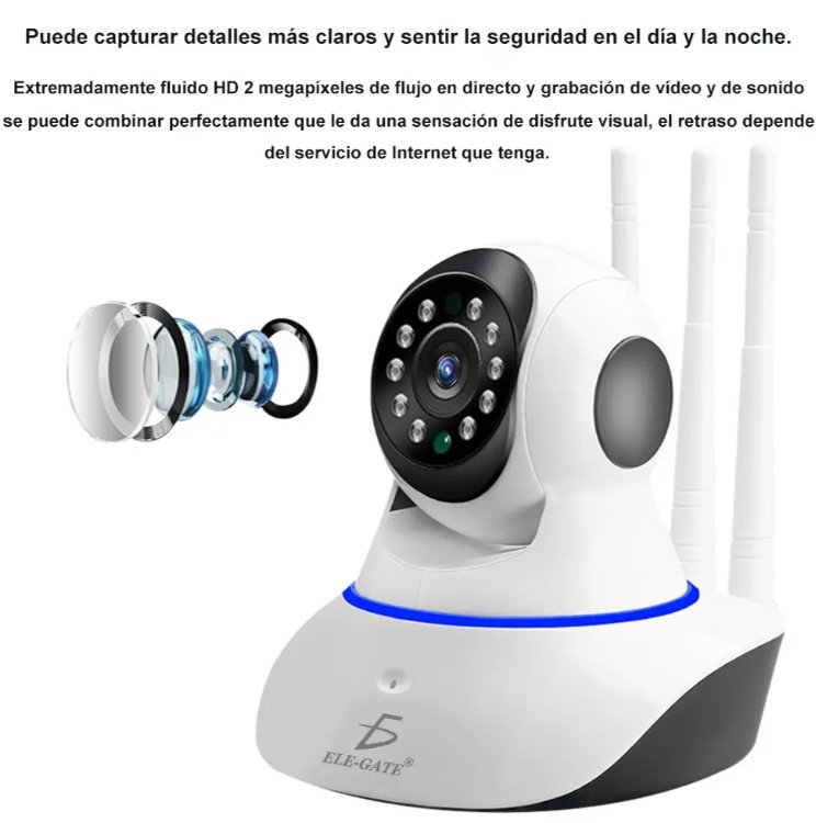 Enhance the security of your home or office with the IP Security Camera, featuring 3 WiFi antennas for a strong and stable connection. This camera provides Full HD video quality, ensuring clear and detailed surveillance during the day and with infrared night vision for optimal visibility at night.