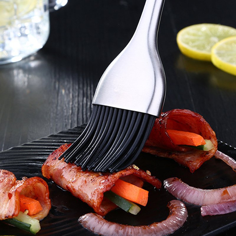1Pc硅胶烤盘烧烤烤肉油刷不锈钢柄糕点刷黄油面包烘焙厨房配件