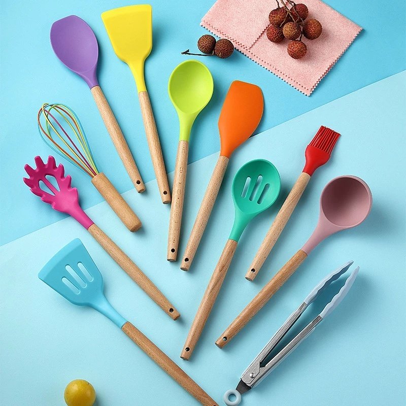 Product Name: Wooden Handle Silicone Kitchenware Set